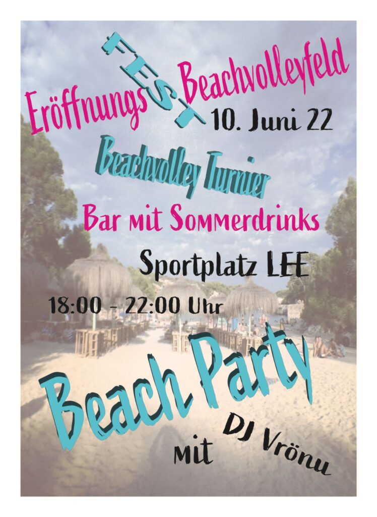 Am 10. Juni 2022 wurde unser neues Beachfeld eröffnet. Hier geht’s zu den Fotos.